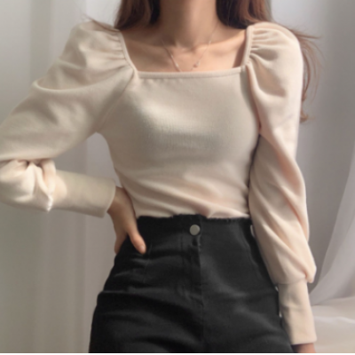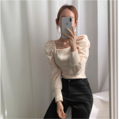 Home > Apparel > Miss > korean style ladies ladies fashion slim puff sleeve shirt blouse baju wanita lengan panjang(2pcs)
